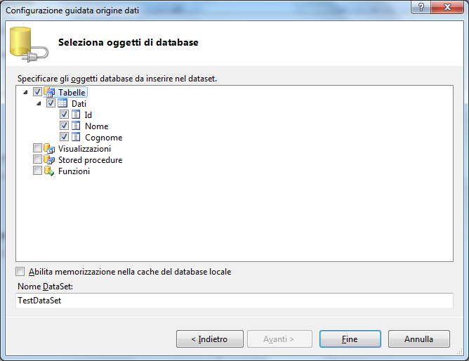 Dopo aver selezionato la fonte dati ed il database di nostro interesse, facciamo click sul pulsante Avanti.