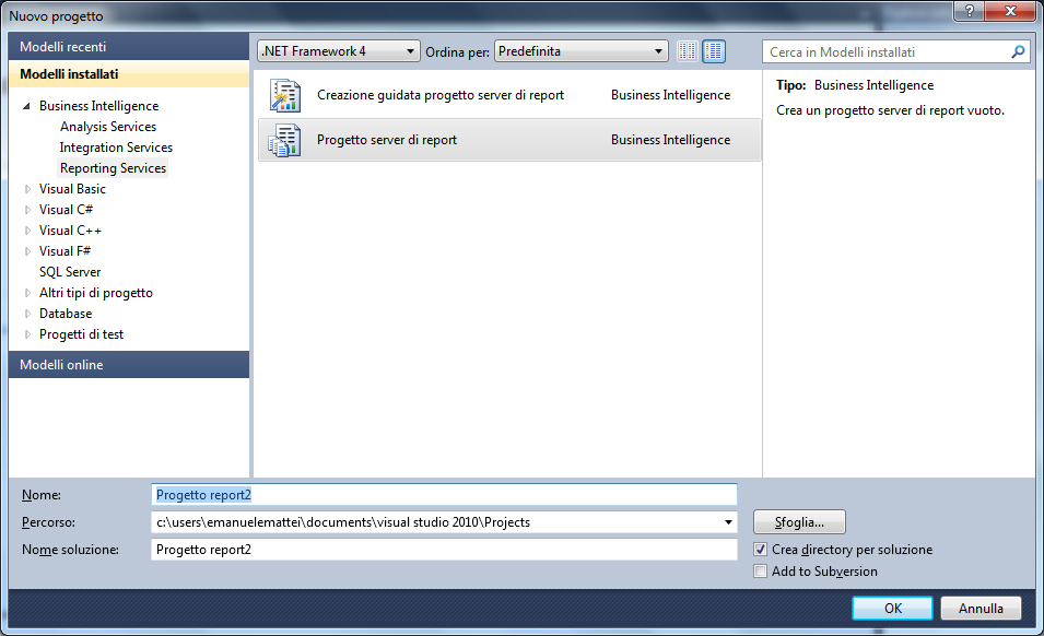 Apriamo il programma “SQl Server Data Tools” che il lettore conoscerà molto bene, appena si avvia l’ambiente di sviluppo, facciamo click sulla voce “Nuovo” e nel sottomenu “Progetto” Nella finestra che viene aperta, selezioniamo nella sezione “Modelli installati” la categoria “Reporting Services” tra i modelli presenti selezioniamo quello relativo “Progetto Server di Report” (figura 1 ) assegniamo un nome al progetto, per esempio “ReportMsAccess”.