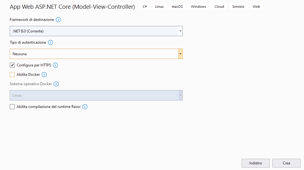 Come si crea un'applicazione ASP.Net 6.0 con supporto Docker