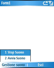 La voce di menu con la scritta Avvia suono, dovrà avviare il file audio, in modalità loop.