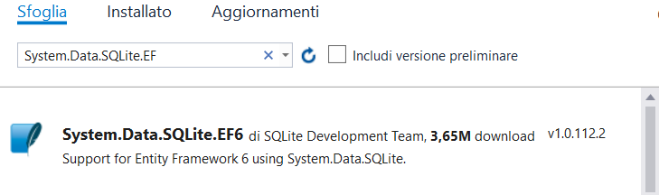 Figura 9 -Il pacchetto per gestire SqlIte tramite Entity Framework