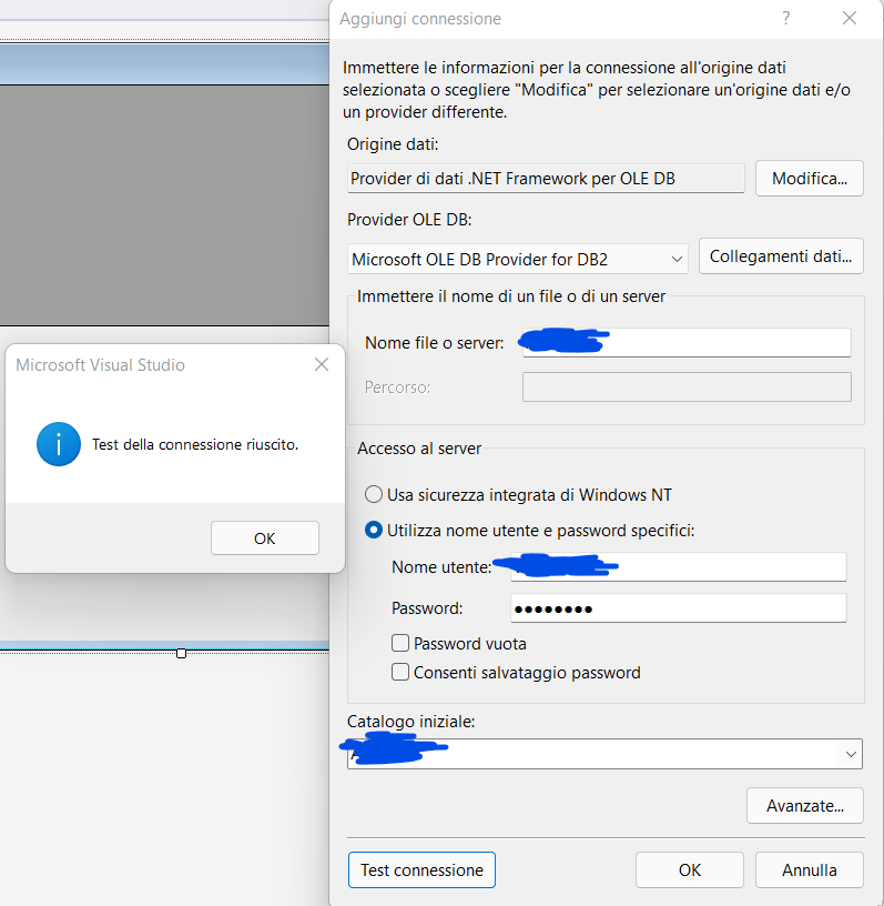 Per esempio, può essere richiesto che il campo “APPC Mode Name” altro parametro può essere il “Default Schema” con il quale viene indicato il nome dello schema per accedere alla tabella, fornito dal DBA, invece probabile che il parametro “Defer Prepare” vada impostato a “True”, impostare il campo “Network Address” con il nome del server dove si trova il database, indicando eventualmente anche la porta, impostare il parametro “Package Collection” con il valore che viene indicato dal DBA, impostare anche il campo “Data Source” e “Initial Catalog” con i dati forniti dal DBA relativo al nome Database, confermiamo il tutto con il pulsante “OK”. A questo punto facciamo click sul pulsante “Test Connessione” per verificare la correttezza del collegamento, il tutto come mostrato in figura 3.