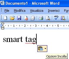 In questo articolo vedremo come creare uno smart tag, tecnologia introdotta dalla versione Office xp. Gli smart tag è un immagine (figura 1), in cui viene visualizzata (per esempio quando si incolla un testo ) sopra una determinata parola, posizionando il mouse su tale immagini, permette di visualizzare un menu di scelta rapida le cui voci eseguono determinate azioni. Spesso tale immagine viene visualizzata insieme ad una sottolineatura, per indicare che avvicinando il mouse in prossimità della parola venga visualizzata l’immagine di smart tag per l’esecuzione di alcuni comandi.