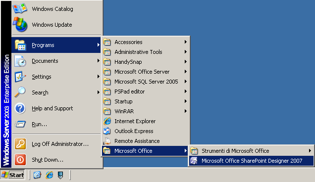 A questo punto nel menu dei programmi, si troverà una nuova voce di menu denominataMicrosoft Office con la voce al programma Microsoft Office Sharepoint Designer 2007 (figura 7)