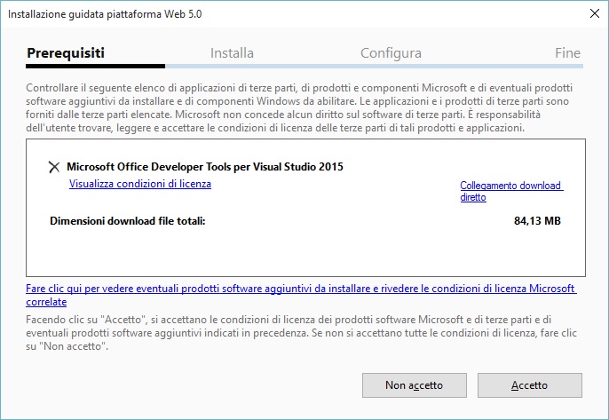 Il programmazione d’installazione si scarica dal seguente sito http://aka.ms/officedevtoolsforvs2015 .