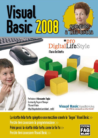 In occasione dell'uscita del nuovo ambiente di sviluppo Microsoft Visual Studio 2008 la casa editrice FAG http://www.fag.it/ha pubblicato quasi in contemporanea all'uscita di questo software, un manuale riguardante l'utilizzo del linguaggio di programmazione Visual Basic 2008. Il libro a differenze di molti altri manuali riguardante l'argomento informatica, della stessa casa editrice, presenta alcune caratteristiche insolite, come lo stile dei caratteri ed il modo di rivolgersi al lettore con un tono più simpatico ed amichevole, a differenza di molti altri manuali tecnici. L'autore del libro Mario De Ghetto, da diversi anni scrivere articoli e libri, inoltre partecipa attivamente alla comunità italiana www.visual-basic.it la più grande comunità nonchè la prima comunità italiana riguardante la programmazione Visual Basic. Il suo blog http://deghetto.wordpress.com/ è in continuo aggiornamento, dove si trovano trucchi e suggerimenti sulla programmazione .Net. Nel libro non è incluso nessun cd-Rom o Dvd, i sorgenti del libro si possono scaricare dal seguente sito http://www.fag.it/booksite/672-1.htm