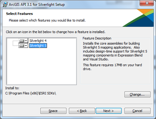 Nella finestra successiva, troviamo alcune informazioni sull’installazione, come la versione di Silverlight per la quale installare i componenti, il percorso dove installarli e lo spazio.