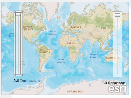 Come si vede dal codice precedentemente riportato, la proprietà "Rotation", è impostata con il controllo “Slider” in questo modo ad ogni spostamento del controllo, nel momento in cui si cambiano i valori, viene ruotata la nostra mappa.