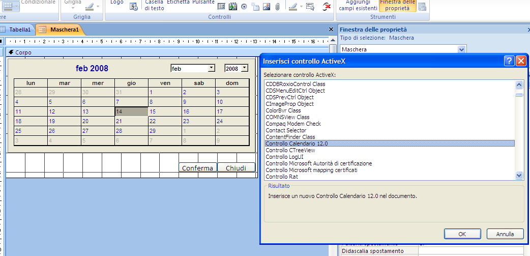 Tramite il pulsante inserisci controllo ActiveX, nella finestra che viene aperta (figura 2) selezioniamo la voce “Controllo Calendario 12.0” selezioniamo tale voce e confermiamo tramite il pulsante ok.