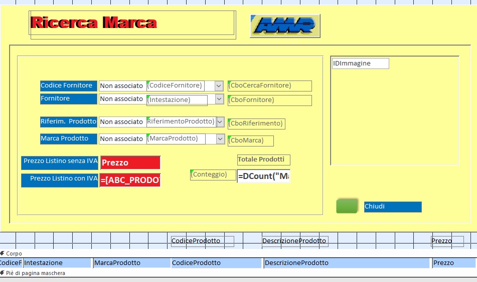 [FORNITORE] AND [RIFERIMENTRO PRODOTTO]