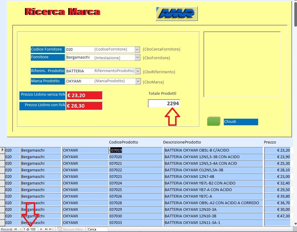 Quel codice su Dcount non conta le Batterie fornite da Bergamaschi, ma tutti i materiali forniti da Bergamaschi... quindi i criteri da concatenare sono 2...