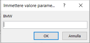 Ho provato usando una variabile String al posto di scrivere direttamente il nome della marca ma niente, ottengo sempre l'apertura di un InputBox che allego