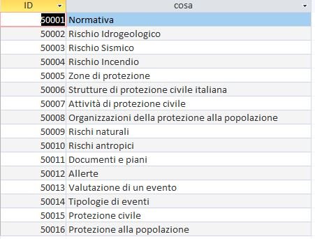 In pratica il lavoro che devo fare è la creazione di un glossario. Ho la tabella Cose di due colonne una è l'ID (univoco) e l'altra, "cosa", che contiene tutto il resto (lemma, definizione, fonte1,fonte2, url, ambito semantico).
