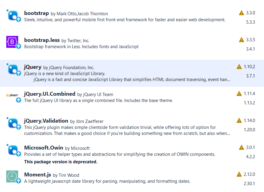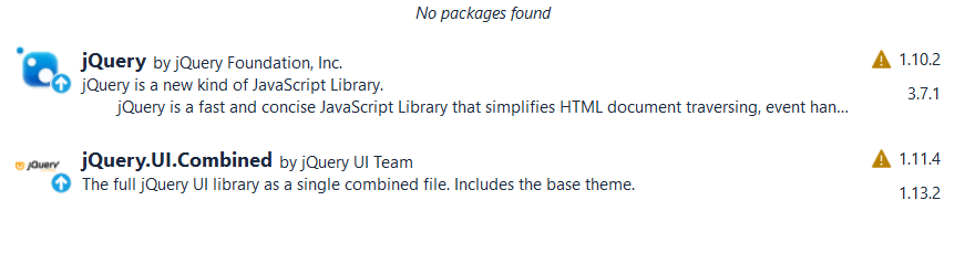 Questo accade perché la versione del package che stai utilizzando (jQuery.UI.Theme.Redmond) richiede una specifica versione del package JQuery: aggiornando quest'ultimo, la versione non è compatibile con quella del primo, come poi è indicato nel messaggio di errore.