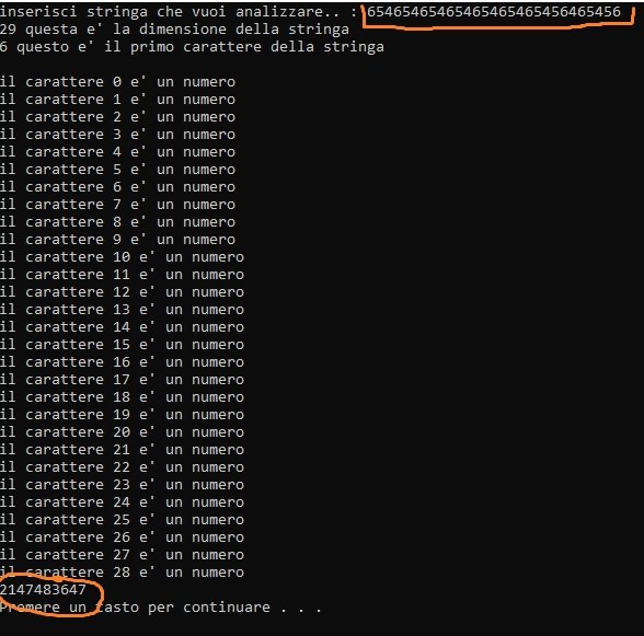 cout << "inserisci stringa che vuoi analizzare.. : ";