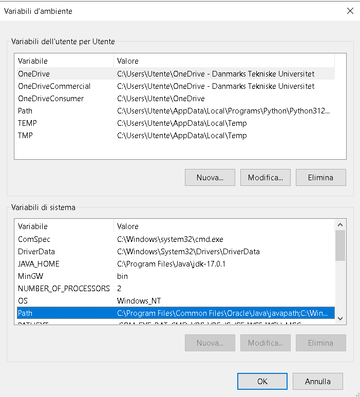Chiedo scusa per il termine, ma non sono del mestiere. ho installato MinGW e ho applicato il pacchetto e mingw32-base-bin. poi ho provato a modificare la variabile di sistema path e inizialmente sono riuscito a farlo, dopodichè sbagliando ho anche modificato la variabile path dell'utente, ora sto riprovando a modificiare di nuovo la variabile di sistema path, ma il computer mi impedisce di farlo. non so cosa potrei aver sbagliato