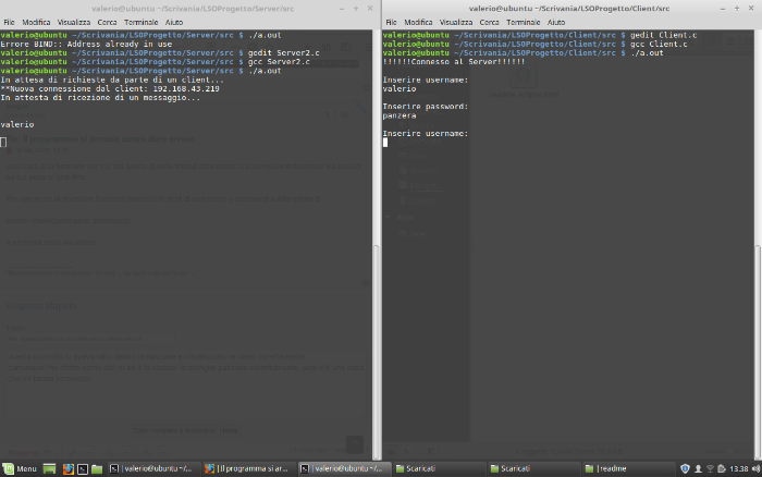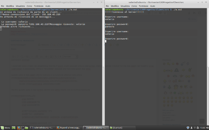 i parametri sono chiesti dal programma tramite 2 scanf, e per passarli utilizzo due write(), mentre il server li riceve tramite due read() nei rispettivi array username() e password(). Infine li "dovrebbe" passare alla funzione questi due array