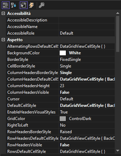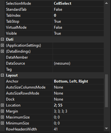 - le dimensioni della datagridview è fissa