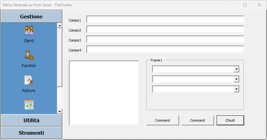Cliccando sui bottoni funzionali viene massimizzata la frame di destra in cui:
