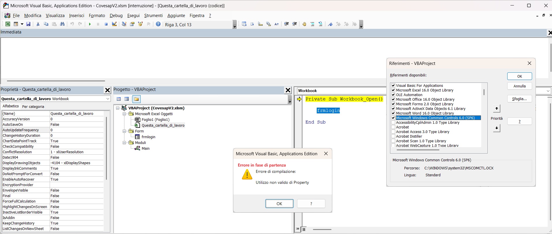 Ho creatoe il primo Modulo (Main) e la prima UserForm.
