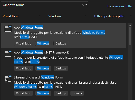 Ho installato Visual Studio 2022 e per cominciare a capire qualcosa fatte delle ricerche sono arrivato alla pagina: https://learn.microsoft.com/it-it/visualstudio/ide/create-a-visual-basic-winform-in-visual-studio?view=vs-2022.