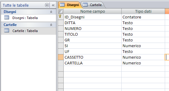 OK. Quindi entrambi NUMERICI. Quindi dobbiamo dare risalto ai loro rispettivi IDCassetto e IDCartella.