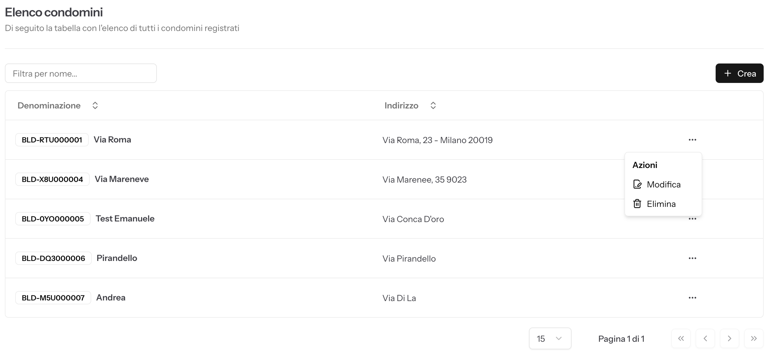 Se posso dare un primo consiglio, quando una persona crea il condominio, mettere vicino un'icona a forma di penna, in modo da modificare, oppure che al click permette di fare le modifiche o inserimenti dei condomini. In questo modo lo rendi più navigabile.