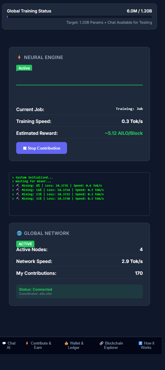 Il concetto è semplice, invece di bruciare elettricità per risolvere hash crittografici fini a se stessi, il mio protocollo usa la potenza di calcolo per addestrare (training) o far girare (inference) una rete neurale. In pratica, Proof of Training.