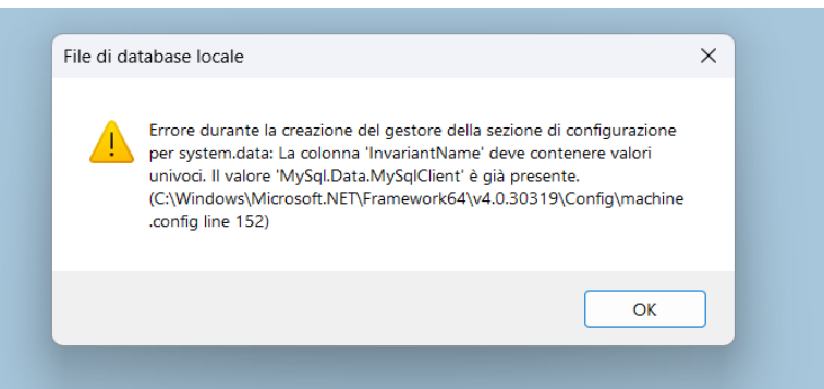 Purtroppo non ha funzionato, ora il messaggio di errore è questo: