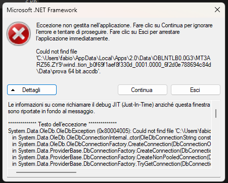 premetto che sono un utente alle prime armi, ho provato a fare un semplice programmino con un database access in versione .accdb.