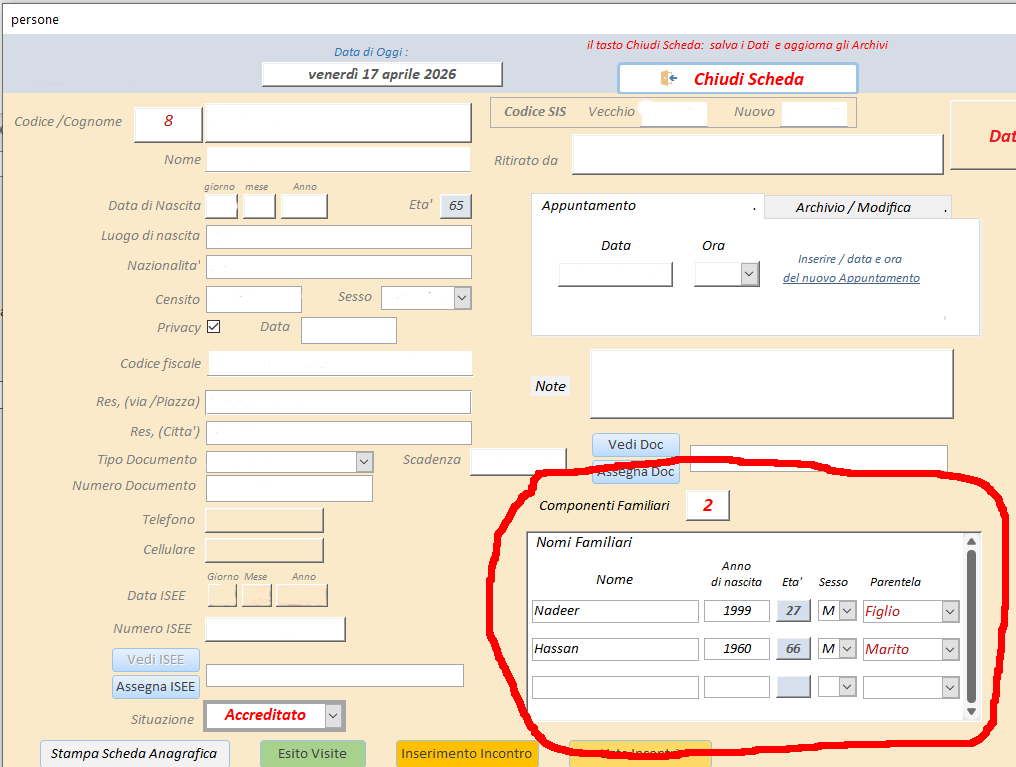 Su quello che hai fatto (e che hai mostrato) manca un tasto modifica seguito da conferma e annulla. Tu chiudendo applichi modifiche ma probabilmente l'utente sta vedendo la scheda dopo un doppio click su un form principale che mostra i record. Se disgraziatamente urto il mouse mi si modifica lo stato di famiglia.