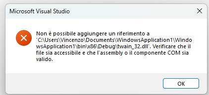 Come detto da @Alka, "twain_32.dll" e' una NORMALE DLL, che NON PUO' ESSERE IMPORTATA cosi' come e' in un'applicazione .NET.